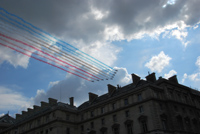 「パリ祭」の連帯飛行の様子が良く見える。写真を数枚。良く撮れていました。帰りはグループから離れて歩いて