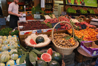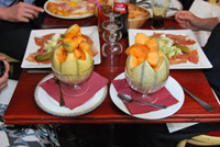 無事ホテル近くまでたどり着き、ホテル近くのレストランでで昼食を・・・。ピッツァとメロンと生ハムを注文。