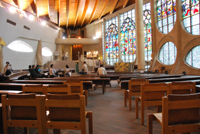 内側も改装中で趣に欠けます。教会内は絢爛豪華なステンドグラスで