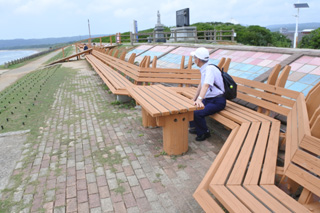 千里浜ドライブウェイは、波が荒く浜辺近く打ち寄せているためドライブ中止で見晴らし台より見学。