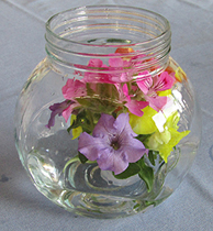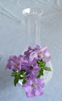 ベランダに咲いた花を利用して、テーブルを飾ります。たまにお花屋さんで、小さなお花を買って