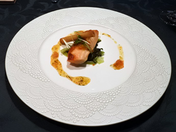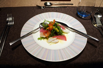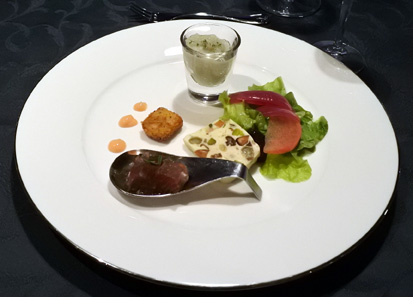 このホテルのレストラン「マノス」でのコース料理でした。美味しいです。食前酒に