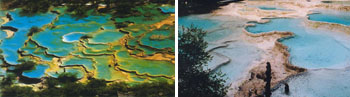 黄龍は渓流に沿って大小3000を越す湖沼が